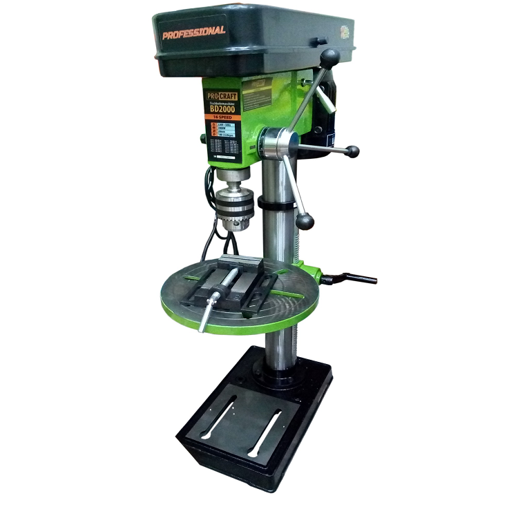 Свердлильний верстат Procraft BD-2000 призначений для виконання свердлильних робіт по дереву, пластмасі та металу. У даній моделі передбачена можливість регулювання швидкості обертання шпинделя, можна змінювати кут нахилу робочого столу до 45 градусів, а також можна встановлювати необхідну глибину свердління, що дозволить максимально підлаштувати інструмент залежно від роботи, що виконується.